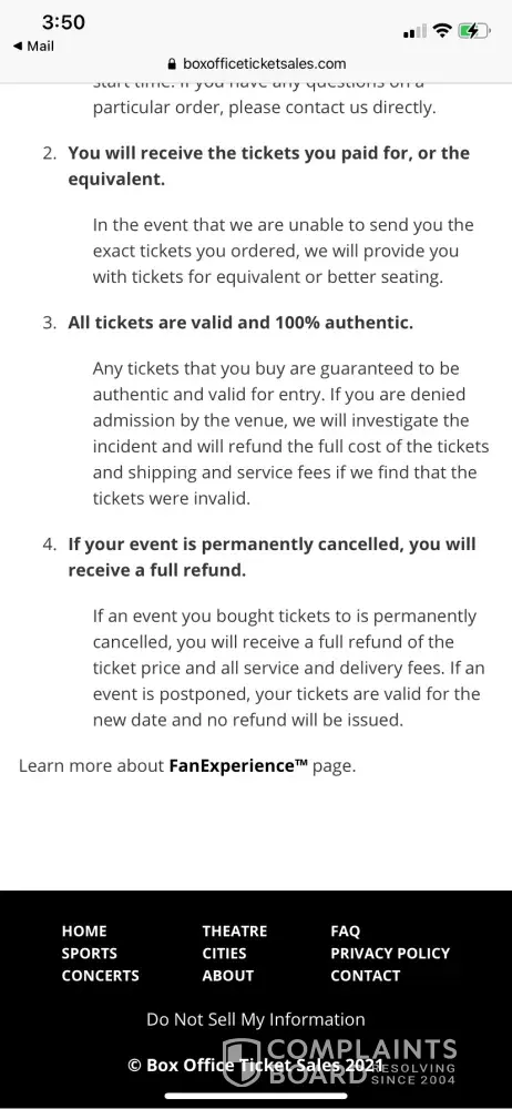 Well we have already filed a complaint & our credit card co is going after them! Enough of the lies & games Box Office Tickets, , you did this to yourself, , I will write a review on every site I can!