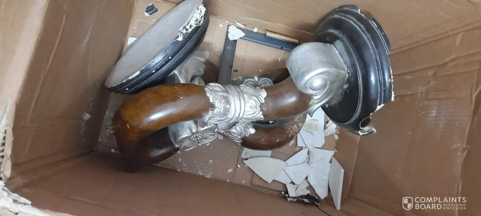 I am making this complaint for compensation and taking strict action against your courier boy, and next time you are requested to send professional people who know how to pack professionally.