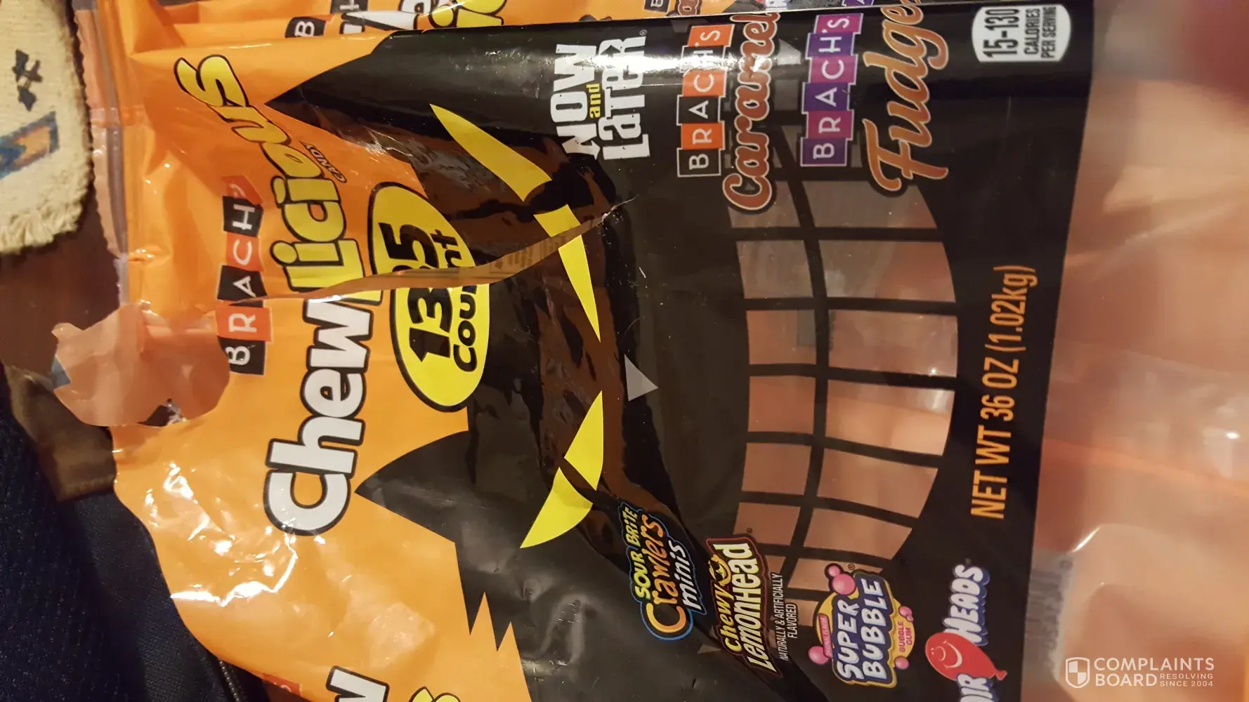 I purchased a bag of Brach's Kiddie Mix Halloween candy from Walmart for my household. Once we opened it we noticed that there werent any Now & Later candies in the entire bag & the WarHead candies are so melted that they won't come out of the wrappers.