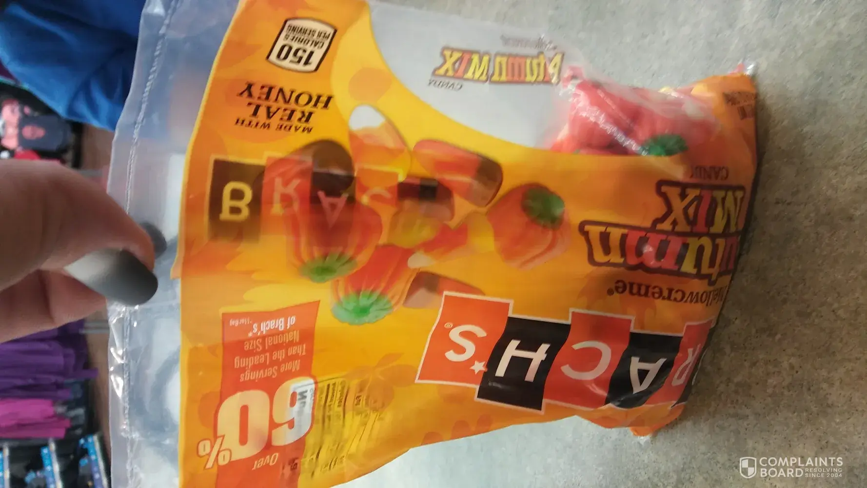 I look forward to buying this product every year around this time...however this time I purchased a bag of the product and was very disappointed. I selected the "perfect" bag or so I thought. Perfect meaning that because I prefer the candy corn and pumpkins the most and the only way to get both together is to buy the Autumn Mix. Well when I saw this specific package on the shelf it immediately caught my eye as it had mostly these two favorites in it with very few Indian corn which I thought was great. So I proceeded to check out and purchased them. To my surprise when I sat down to open them I noticed that the bag was less than 1/2 full with the rest being air. What shocked me about the quality was that on the package I bought it specifically said Over 60% More servings than the leading national size of Brach's. So I wanted to bring this issue to your attention. I completely understand that most packaging is done by machine nowadays so it could be quite possible that this package could have been one in a million to get filled up less than normal. Thank you in advance for your time.