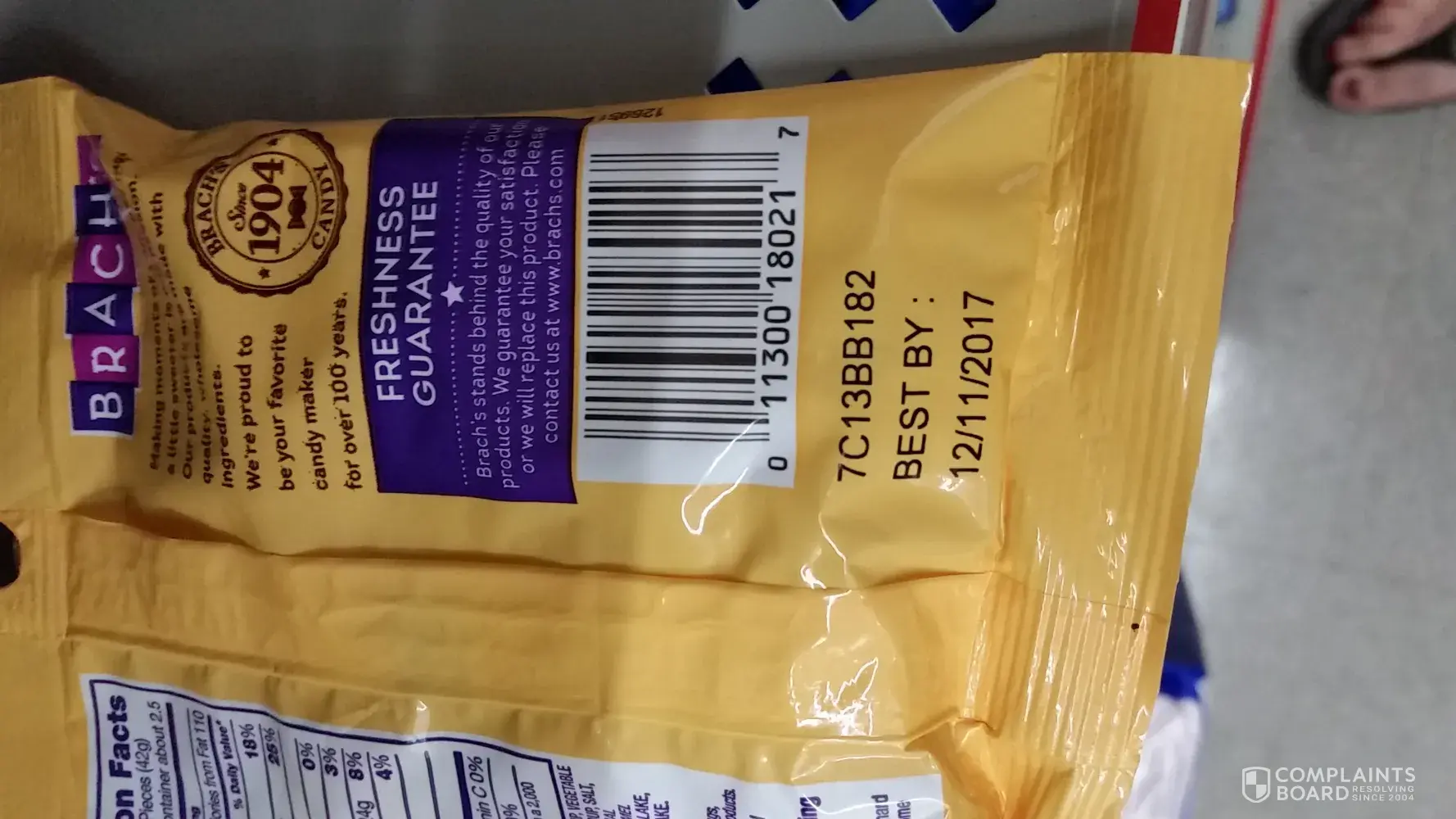 We have enjoyed brach's for over 50 years I like the bridge mix the best and your Malta balls we bought some Maple nut goodies and they were hard as rocks my wife likes them they usually melt in your mouth these were not melting we had to throw the bag out Best Buy January 1st 2018 product code number 7D 03 CC B b 214