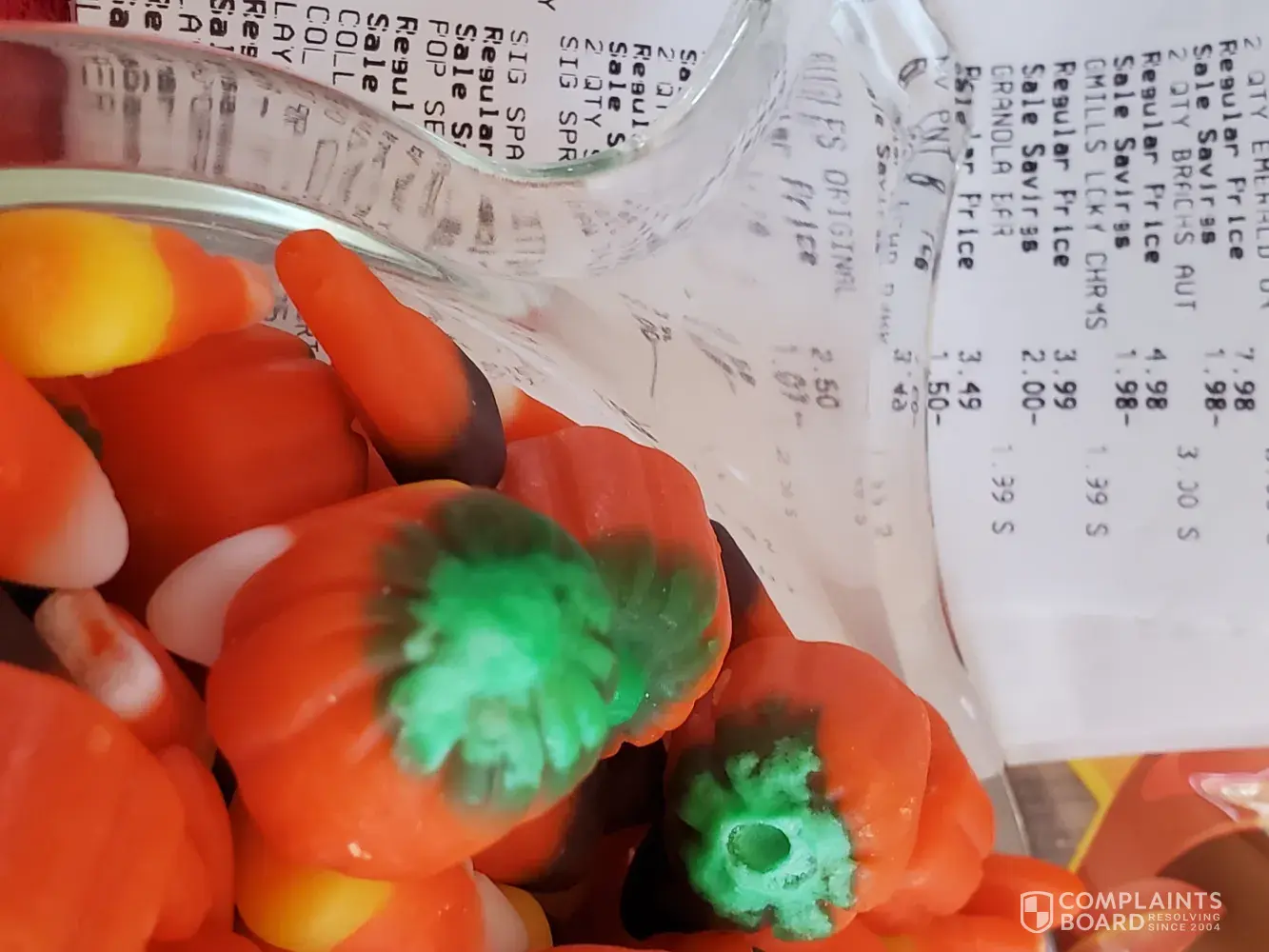 My granddaughter was so excited to be able to get the Autumn mix from you finally. She bought 4 bags. Got home and opened one. The pieces taste like wax. No flavor. No sweetness, just wax. She opened another one. Same thing. WAX! What is going on with your candy? If its the pandemic, maybe you would be better off not even making it at all. This is the code on the bottom of the bags.