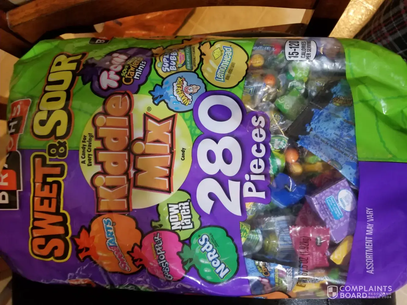 I bought a variety pack of Brachs Kiddie mix for my son's birthday. It seems as if there are candies missing. It was supposed to have suckers and other candies however 60% of the bag was jaw breakers and the other percent was now and laters, then gum. There were only 1 suckers and 2 pixie like candy. All the variety that was actually noted on the bag was not in there at all. I have pictures to show the difference as I separated all the candies to take out all the jawbreakers because I don't believe kids should eat them. I wish this would be looked into as this is pretty much false advertising. I paid 14.99 at party city for this.