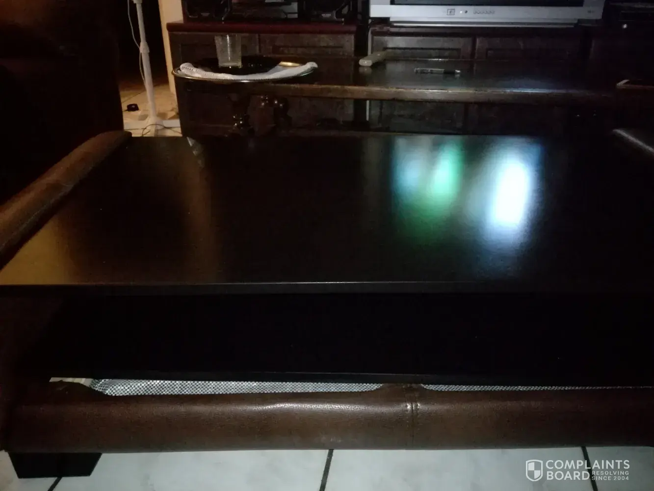 I had to go back to the shop to find out what's happening. I was told that the couches come with a free coffee table, in order to still get the coffee table, I must take out the remaining amount. I told them I can't because that was not the agreement. I had to make plans to take out the laybye.Couches and coffee table were delivered but I was told that they don't open the goods.. I must just see that they sealed.. They left. I waited for Husband to come Saturday and we realised that the table is faulty.
