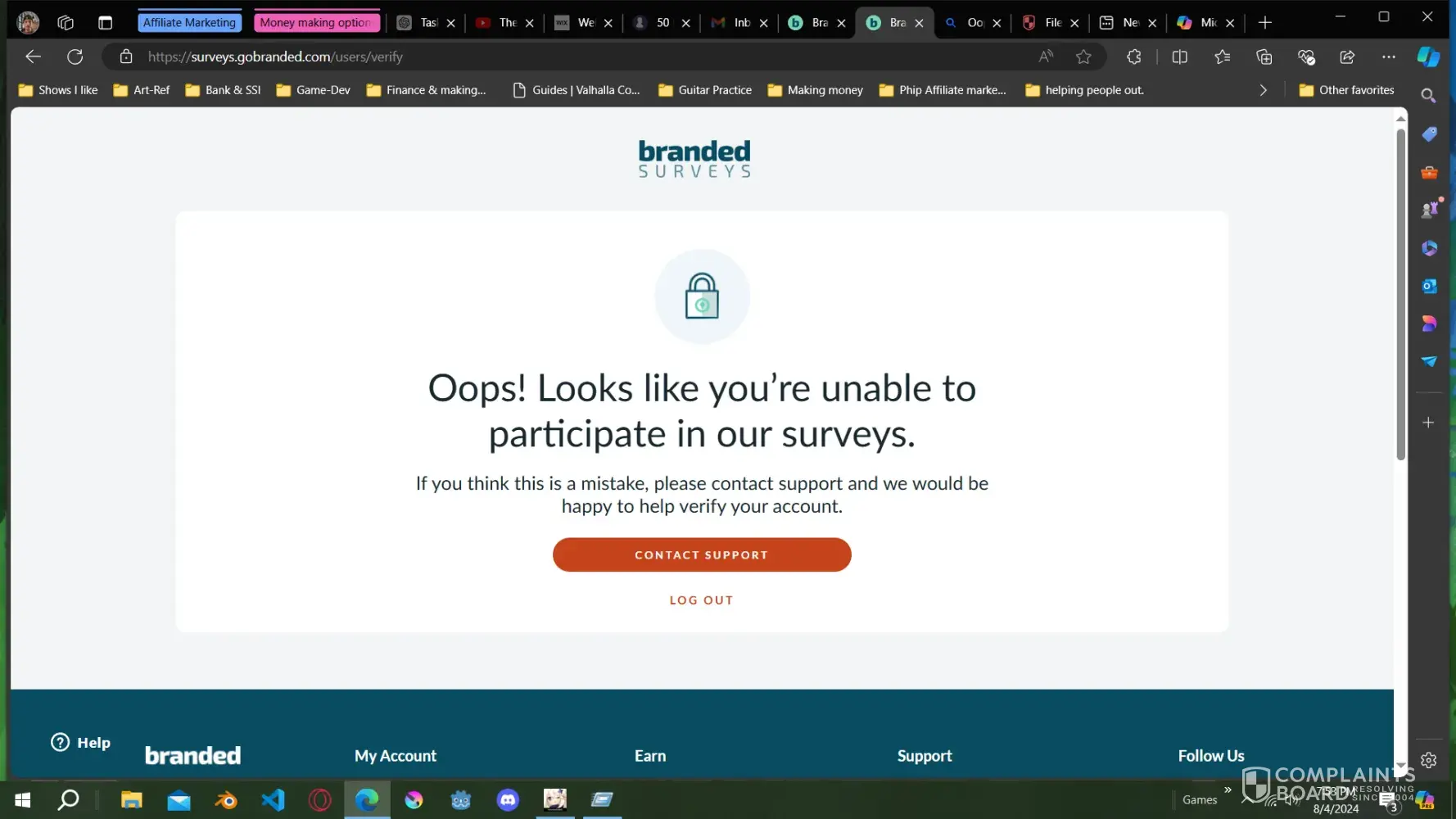 My Branded surveys account is unfairly flagged, When I contacted Branded Survey customer support representatives they told me your system is