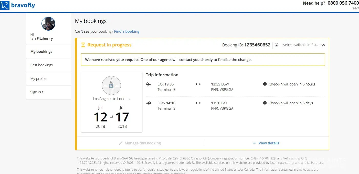 b) it was due to the type of ticket and that this was in the BravoFly Terms and Conditions (T&Cs);