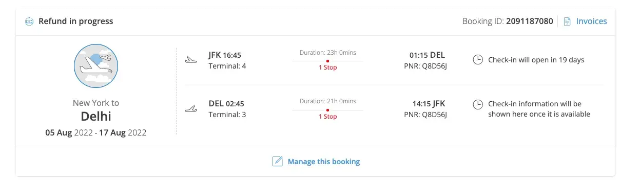 I booked 4 tickets of Air Canada flight from New Delhi to Saint John, Canada for my family. Now 24 days before the flight I received a cancellation email from bravofly. However there is still ticket available uptil Montreal. I am trying to contact Bravofly but there is no official email address and no phone number for India available on their site.