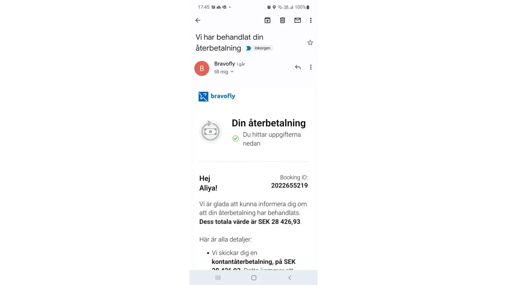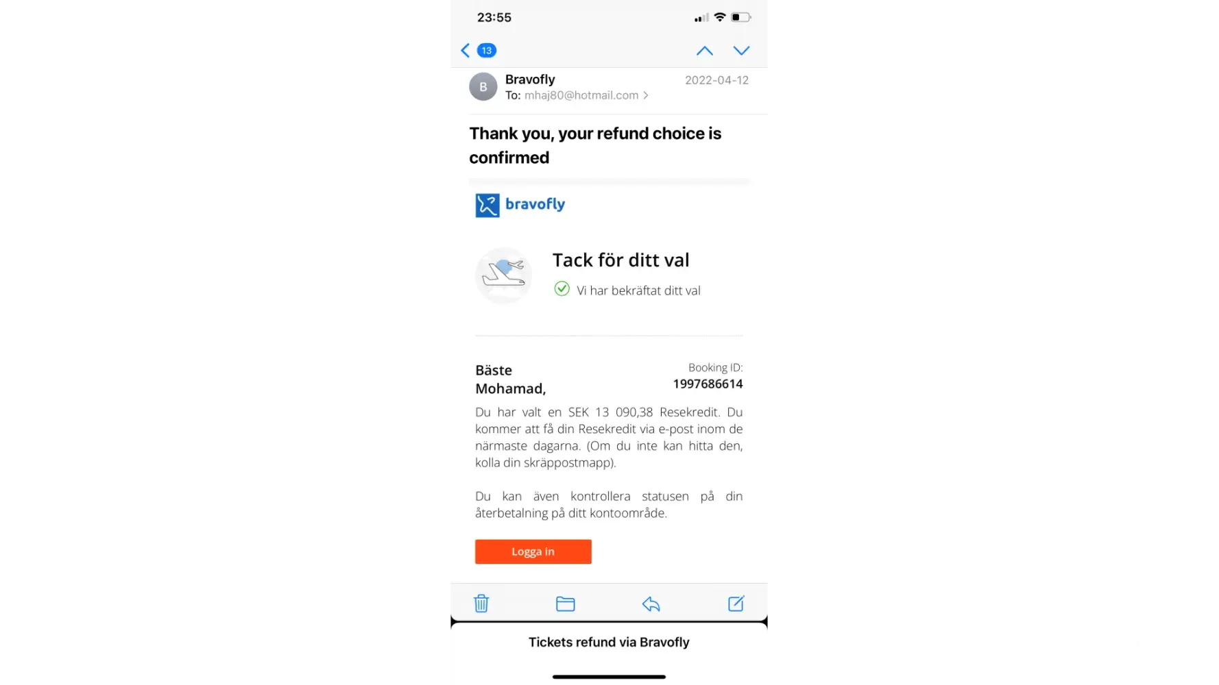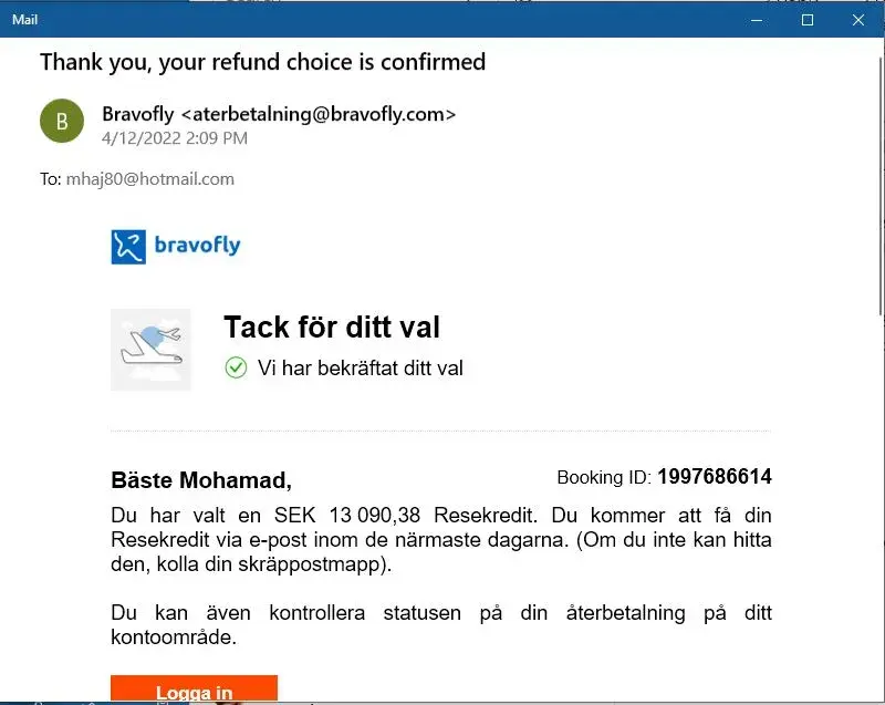 I followed the procedure and approached the agency and proceeded with the required formalities to cancel my tickets, then I recieved confirmation from Bravofly on the same day (12 April 2022) that they will compensate me with 13090,38 Kr.