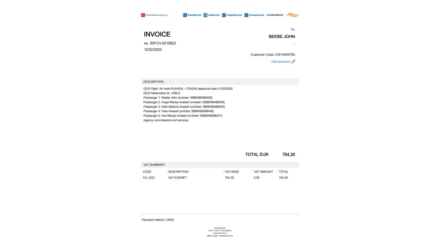 Bravofly booking number: [protected]