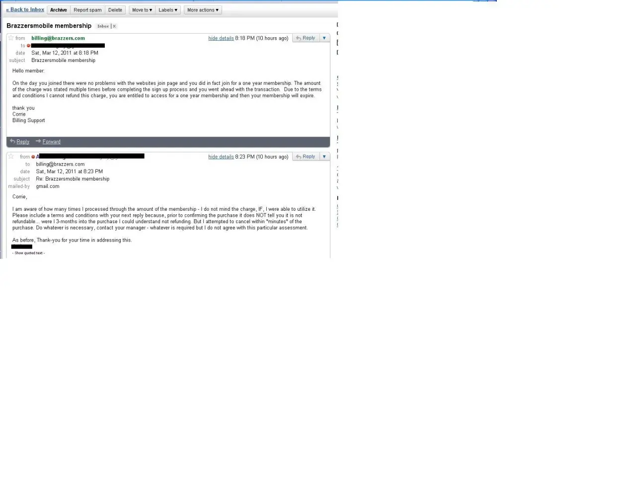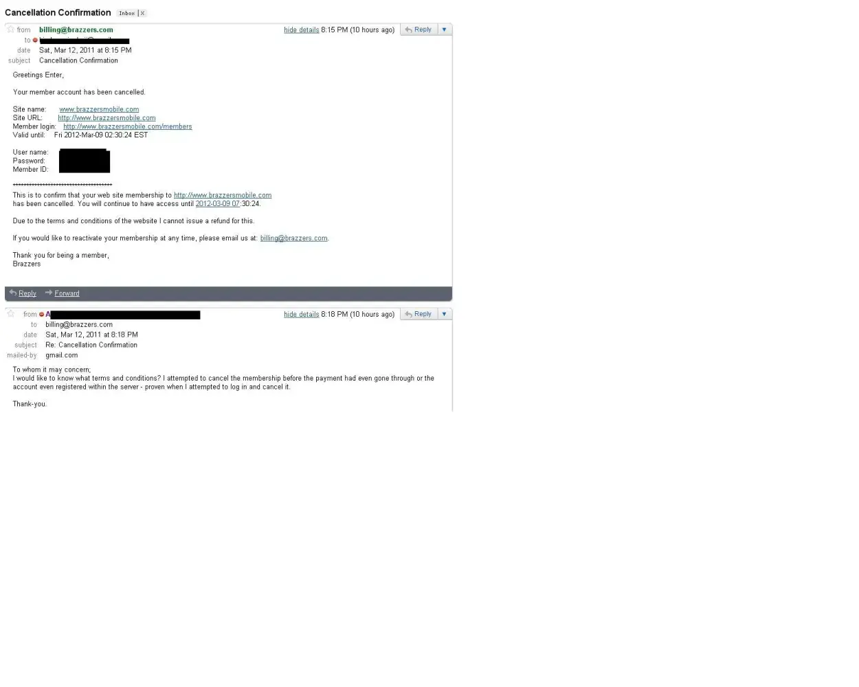 I signed up for a membership at Brazzers.com. The charge was supposed to be 17.95/month. While I was filling out the credit card information, I noticed a small box with a check mark in it. The fine print next to the box said something about signing up for some other service for 27.95. I unchecked the box and continued. Two days later I am trying to get a...