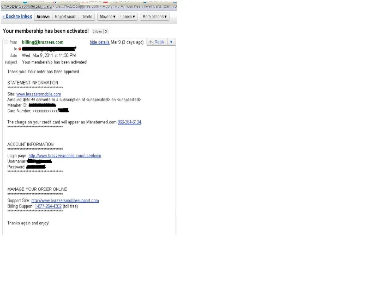 At no time did I sign up for any of the billed services, and I don't even know what they are billed for. I think they got my card number when I signed up for a cut-rate music download site that promptly sold my e-mail address to SPAMMERS. Funny, though, since I do not recall ever giving them my CC number!