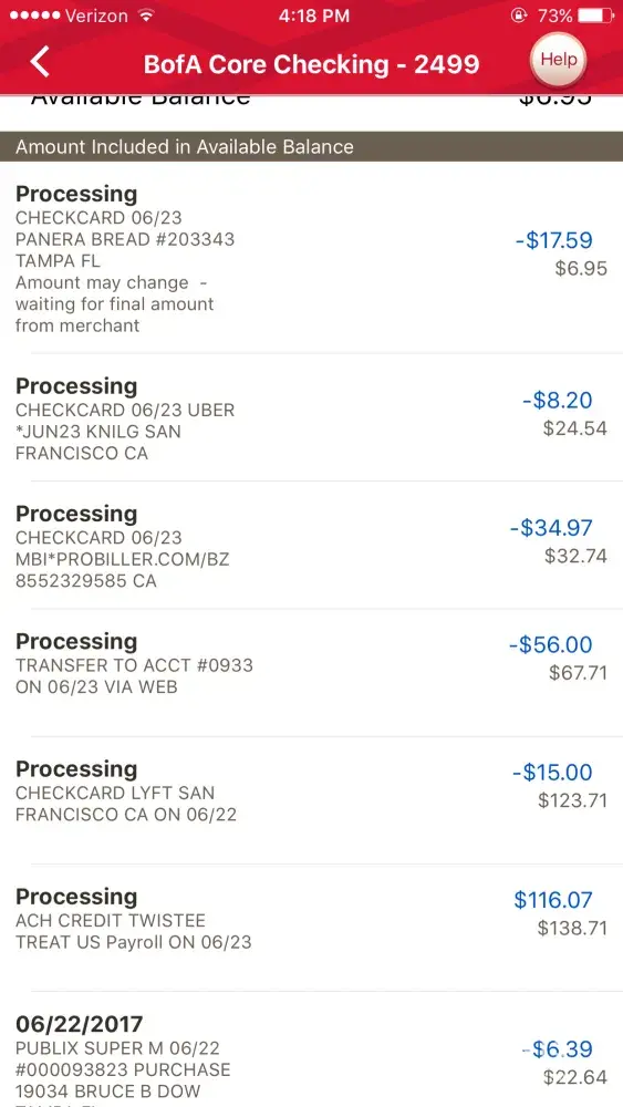 account. i have a screenshot of my online banking and it shows the charge.
