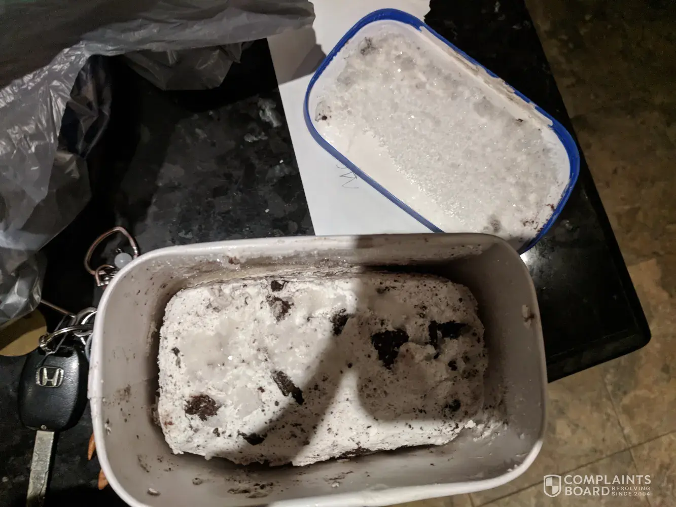 I bought this container tonight as a treat for my birthday. I paid 6.29 for the pint container. When I got home and opened it, the container was not full, the ice cream had shrunk away from the sides and the top was covered in frost bite. It looked horrible but since I have been wanting to try this product, I tried it. It was chewy and tasteless. I was so disappointed on my birthday eve. I tossed the rest in the garbage