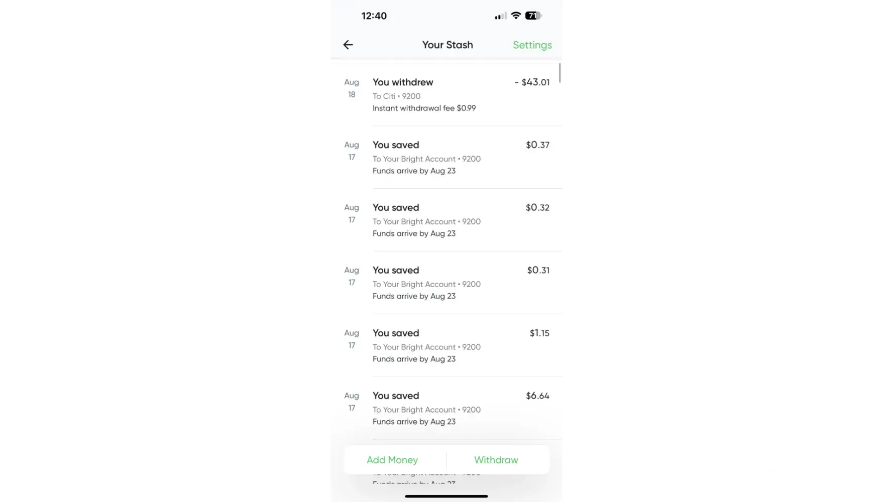 You must connect a bank account to “withdraw” said “stash”, only my bank account will not connect, it never was connected in the first place, but they found a way to take that $99.