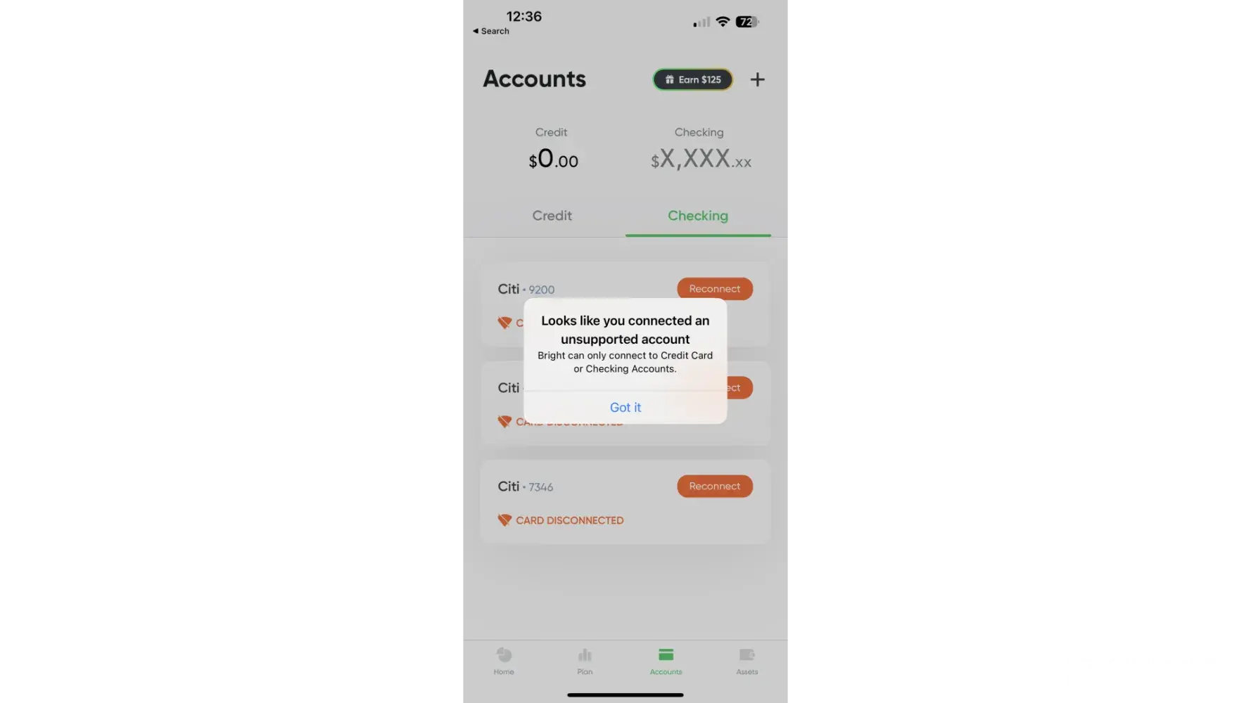 They then tell me plaid does not support citibank. Which is not true because you can see citibank as an option as you try to use the Plaid service. Also my connection was successful UNTIL I'm taking back to the bright app. THIS SHOULD BE ILLEGAL