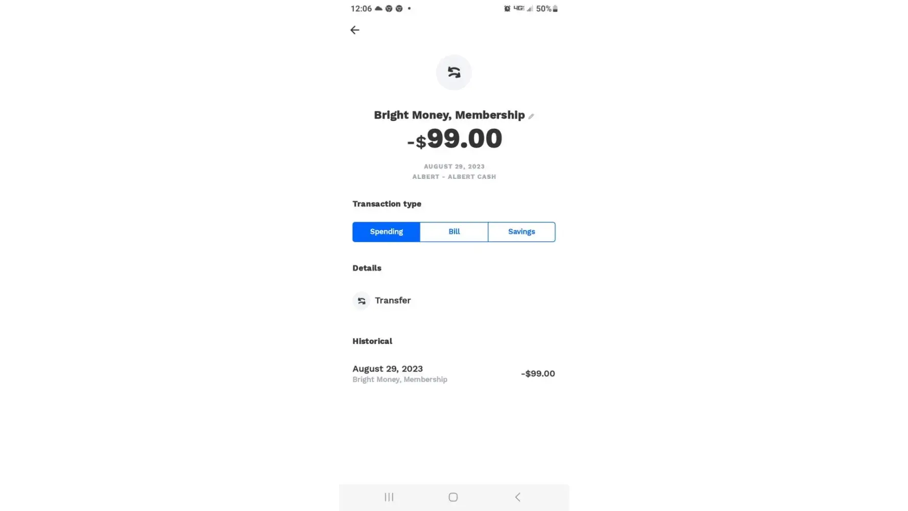 Bright Money I did not authorize $99 be charged to my account