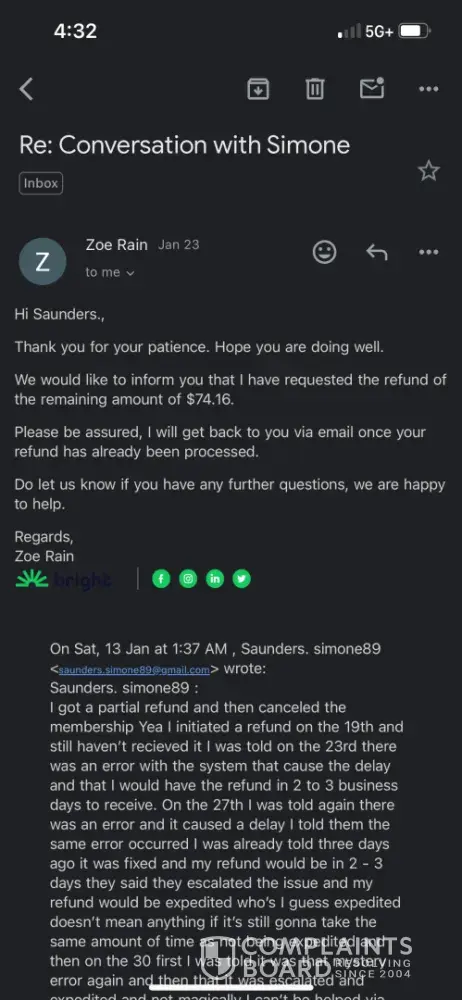 Bright Money Waiting months no refund yet