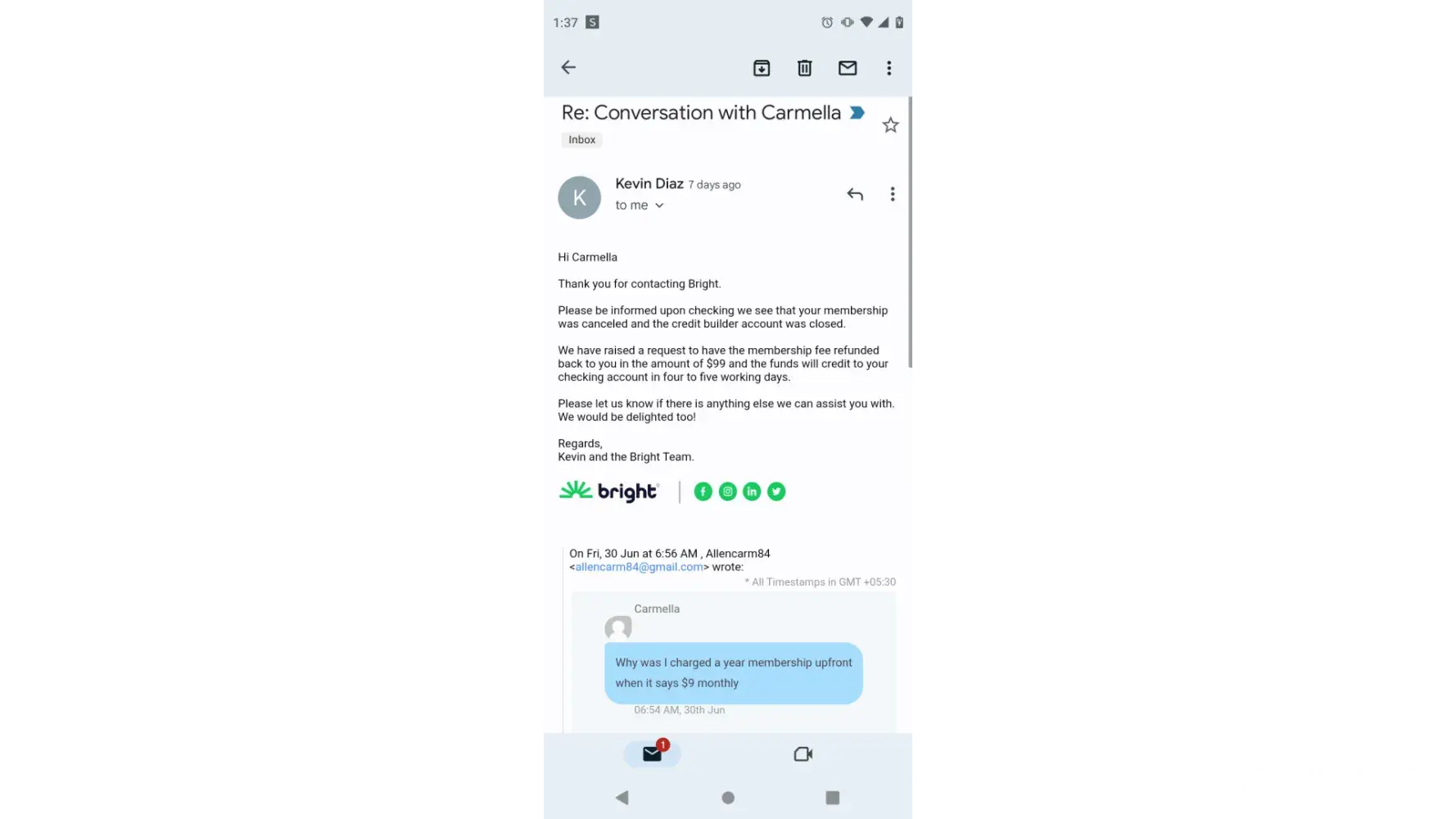 Bright Money is a scam..They deducted a unauthorized membership fee from my bank account..When i tried to contact them about the transaction. No one has contacted me back. It's been 4 days. When i notified my bank about the transaction my bank immediately closed my account and will not open another account for 45 days. So now the money i had in my account is frozen. So now I'm forced to open a new account with a new bank. Had to contact accounting at my company to setup a new direct deposit with a new bank. Bright Money has been nothing but a nightmare. No 24/7 assistant exists like they say they have! Nothing line that at all..Very shady company. I would not recommend letting them have any type of access routing numbers, account numbers to your bank accounts at all. The App didn't help me it hurt me and put me in a terrible position. And with no way to contact them. All tou get when trying to contact them is a bot. That's it.. no human contact what so ever.