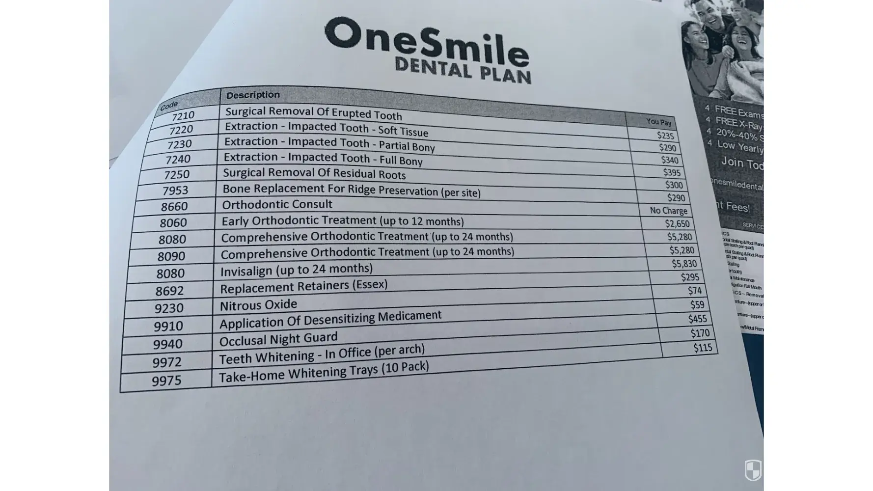 I have a list of dental plan prices and from what they charged me its overpriced.