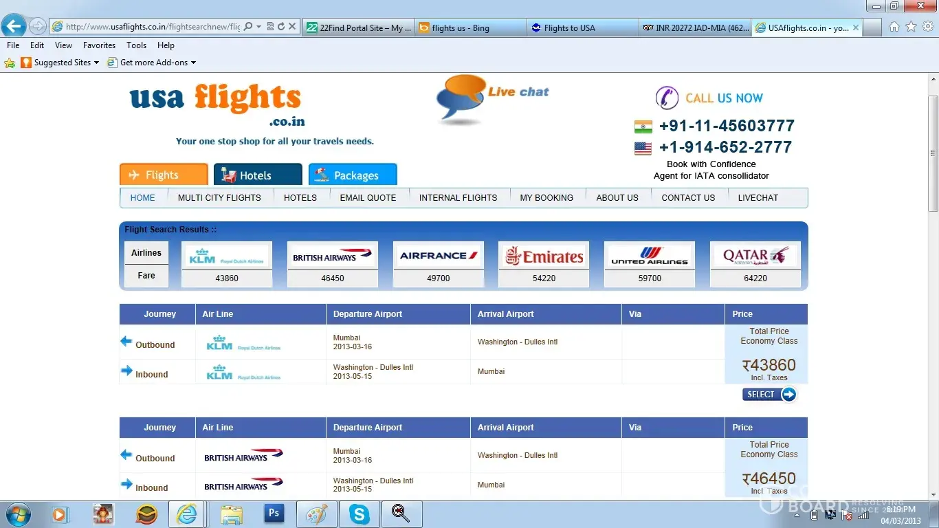 It showed on usaflights.co.in that we can get the return flight tickets @ Rs. 43860 as on the specified dates
