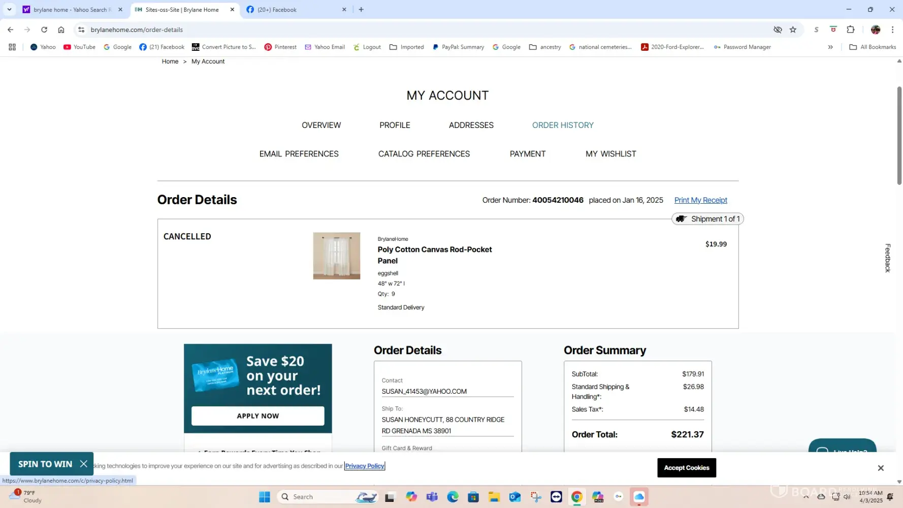 On October 24th I purchased online 4 Vogue 8 Grommet panels for my living room. When they arrived, the shade was darker than it appeared on the website. Because of this, I wanted to return the panels. When I ordered the panels, I never received a confirmation email, was never told it was on backorder and when they arrived, didn't have the shipping slip needed to return the items should I want too. On 11/2/2023 I called your company 3 times and was told to send an "EMAIL" to the complaint department which came back to me 3 times. When I called to report the email would not go through, they sent me to warehouse in New Jersey that shipped the panels. They promptly told me that they could not help but it was Brylanes policy and not theirs, that I purchase a shipping label to return the items. Why should I purchase a shipping label when that should have been provided in the first place?