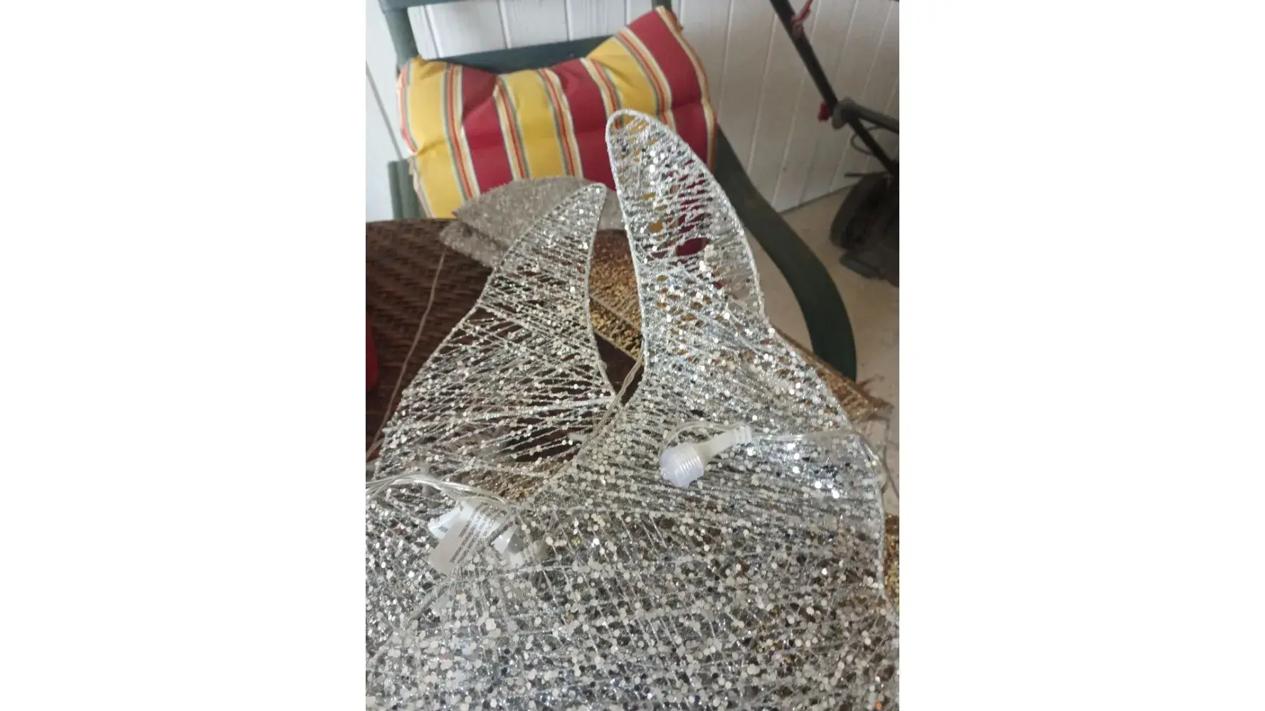 The angel is very damaged it is really bad the glitter is coming off it is torn the color is coming off it look like someone has had it for years I have contacted the company I was told to get in touch with the claims department I've had him to give me two websites and I still cannot find it I have emailed them I just received it yesterday but I am definitely trying to take pictures so they can see it thanks Eloise Lewis
