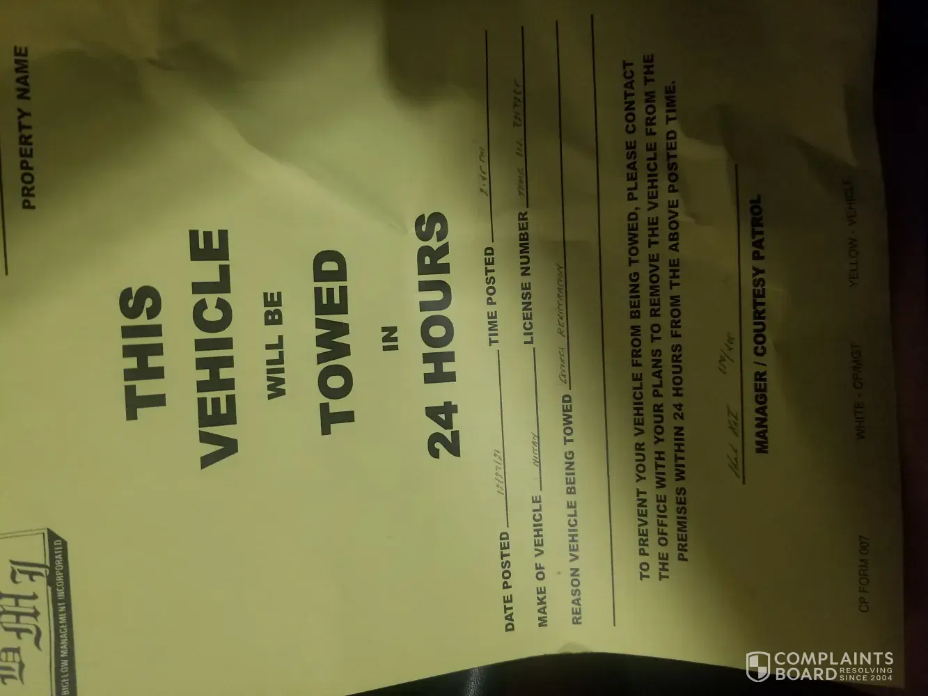 Budget Suites of America I continuously get my cars tagged with tow warning