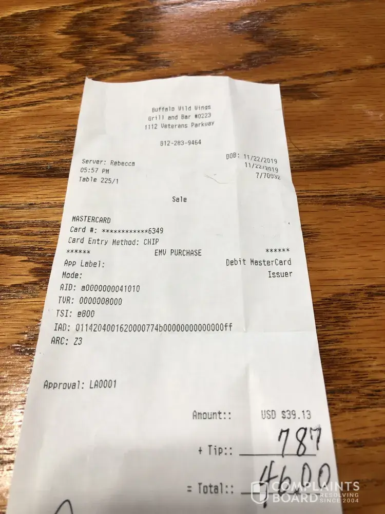 Read full complaintwaitress