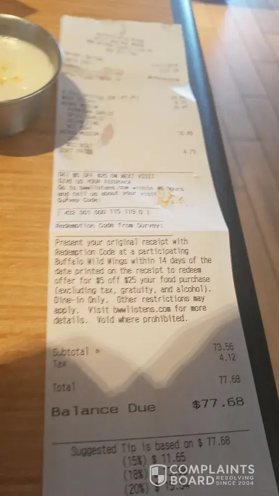 So it was my first time there n I had a amazing nice waitress I was in booth 88. So I know yall are known for your wings so we had gotten a sampler plate n the wings tasted horrid and cold the mozzarella sticks wherent cooked all the way the onion rings where good though. Anyways I had gotten a salad and it came with garlic bread but it came out to the...