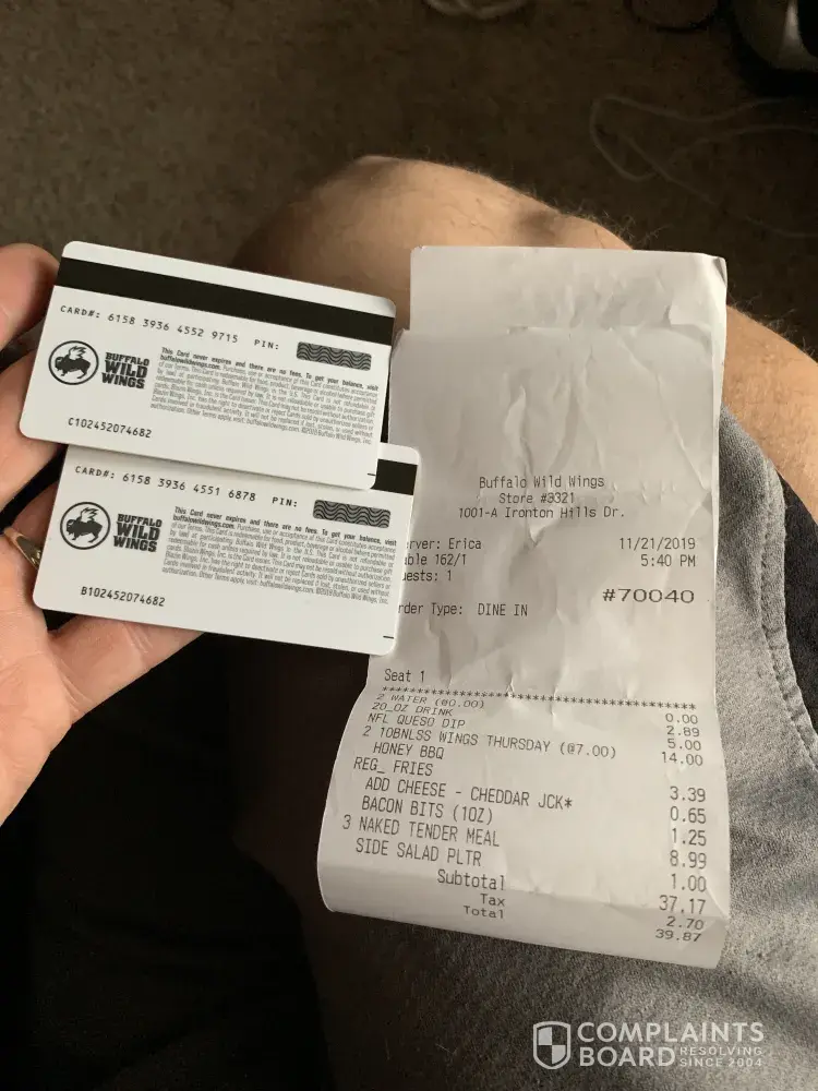 Read full complaintgift cards