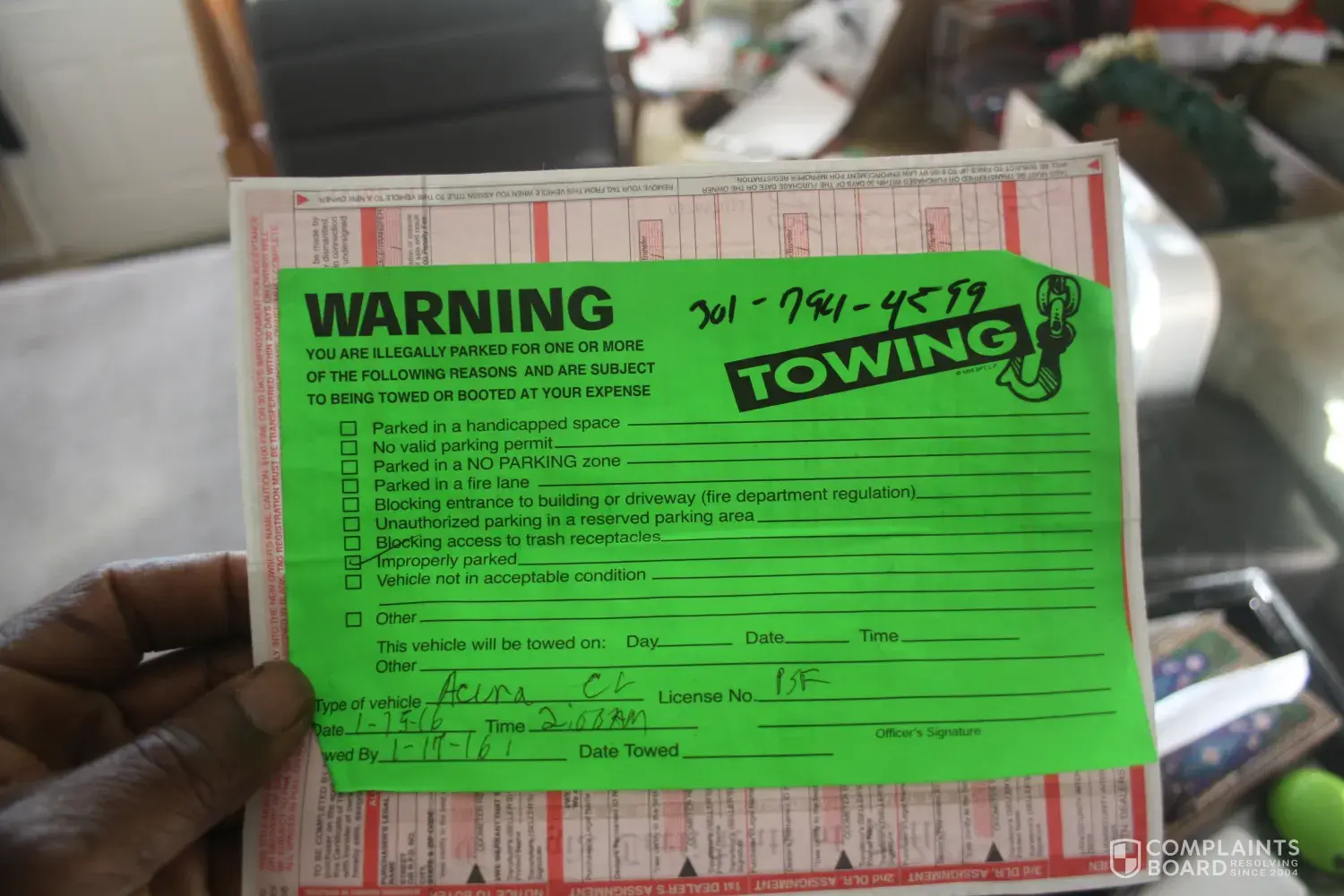 Contacting B2B during their listed business hours was hard. I called as soon as they were to open and didn't reach anyone for an hour afterwards. The dude at the yard when I went to retrieve my vehicle was okay. Just doing his job. But, the folks out there towing are foul. Point blank. And these apartment managers that allow this to go on are just as foul. This was my first experience living in MD. I've never experienced no bull like this in DC nor VA. The apartment managers take care of their tenants. After all, we are the properties real bread and butter, unlike the lil kickbacks (I'm sure) they get from illegal tows on their property. But then again, the property managers probably get no more than $30k/year. Only the big wigs really benefit from the rent we pay. So, maybe this is why the property managers don't give a ### about what happens to the folks living in their complexes?