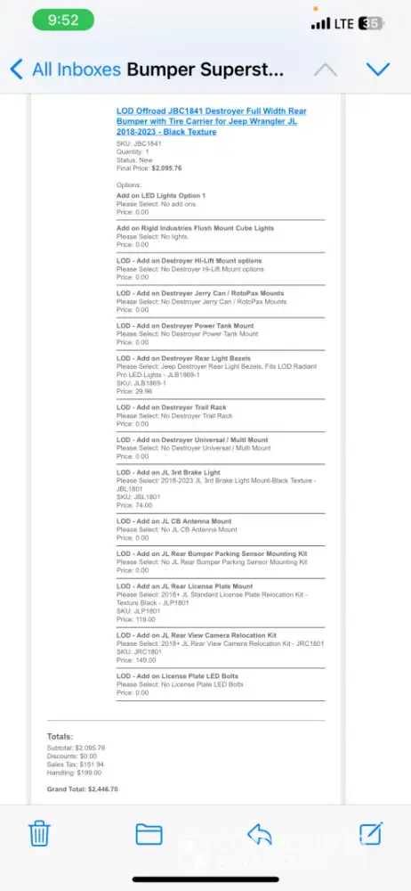 On September 21 I ordered a Bumper and Lights from BumperSuperstore.Com