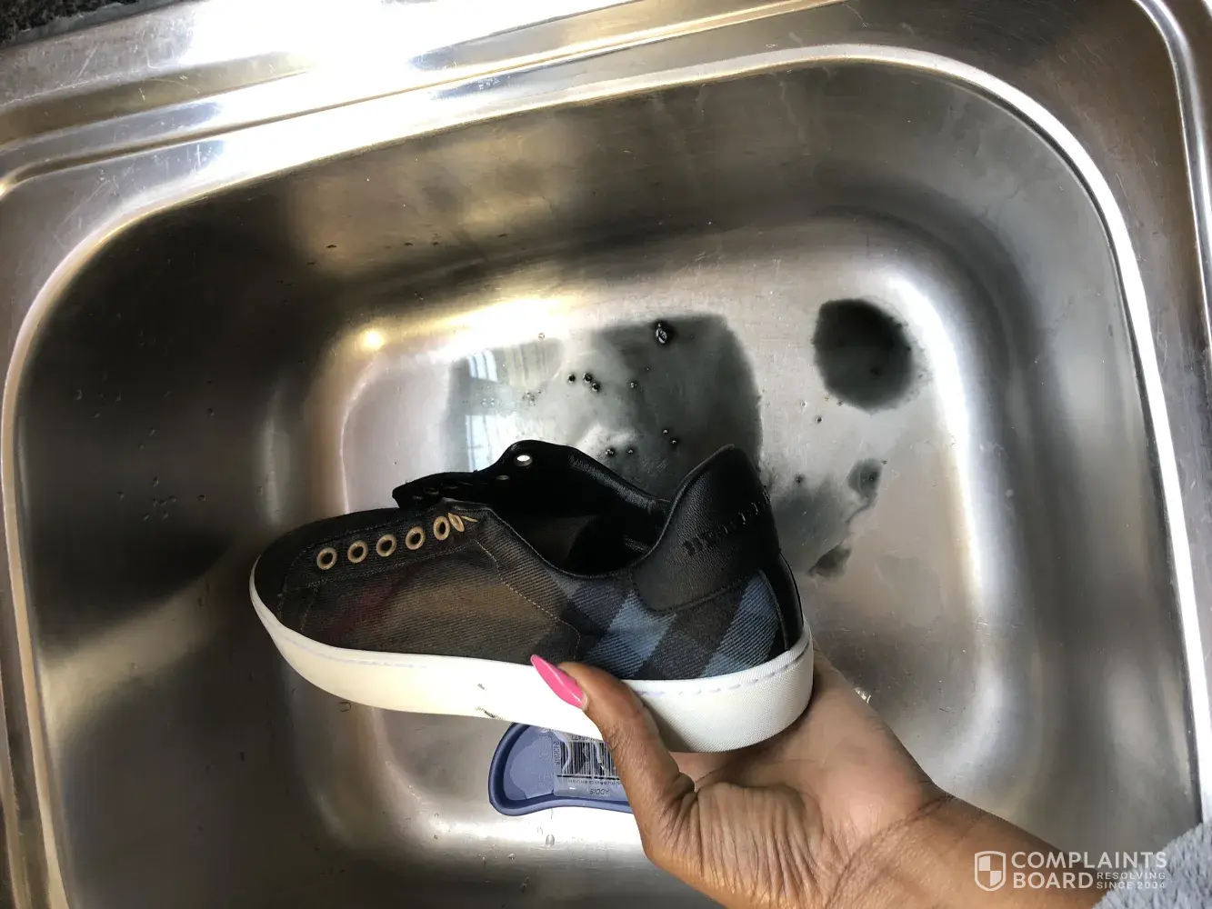 i bought a pair shoes couple of moths ago. I have only weared them 3 or 4 times since i bought them and the name that says burberry pilled off just like you can see on the pincture, and i need to know how can burberry resolve this issue for me, im also sending you the receip...THANK YOU