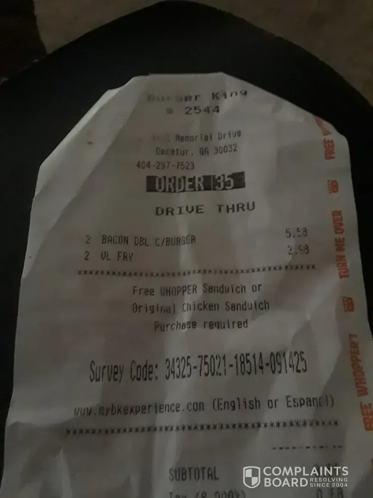 My name is Mary Maxion and I went to the BK store #2544 on 4622 Memorial Drive Decatur, GA 30032 on Saturday, May 18, 2019 at 1:17pm.
