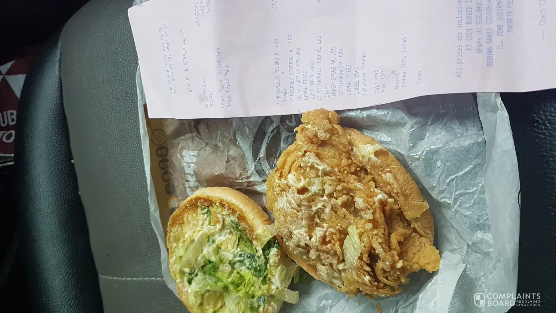 Pembelian burger secara drivethrough di Burger King rest area km 38, Bogor 1671. Burger yang dibeli adalah TC Steakhouse BBQ ML Large setelah dibuka bungkusan burger tidak sesuai gambar brosur hanya burger ayam crispy di beri selada saja tanpa keju, tomat & mayonaise. Tidak sesuai yg ditawarkan di gambar menu. Kecewa jadi hilang nafsu makan like see garbage food.