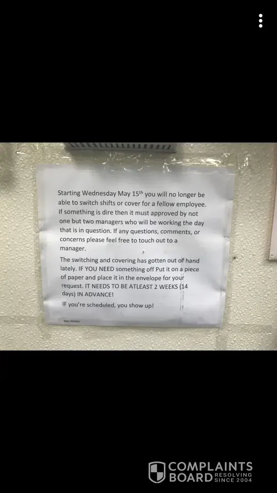 I want to make sure these two boys that were there - dedicated employees getting to work on a bike get paid for their wasted time sitting there in the parking lot. They took video to prove they were there and I took a picture of them as well to have proof.