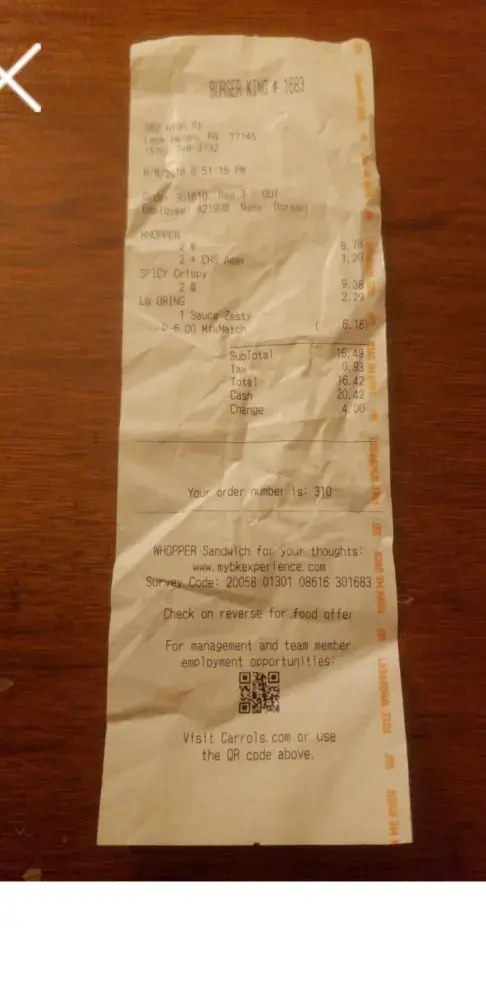 at my local BK they have 2/$6 whopper or chicken sandwiches. i ordered 2 whoppers and 2 chick sand. when i got home about 15 minutes afterward and checked the food i realized that they had charged me for 2/$6 chicken and also 1 single whopper and 1 single double whopper. i would have taken the food back but i would have spent a half hour driving total. so we ate the food but i am upset that the staff could not take an order correctly it should have costed me $6 not $4.39 + $5.49 for the whoppers . also they asked if i want sauce with my onion rings i said yes they never put it in the bag . My local BK was closed for a couple months for renovations. since they reopened i have been there 3 times, each of which they have gotten at least one thing if not more than one thing wrong with my order. the visit i made on 8/6/18 i ordered a lg onion ring and i got 6 small onion rings in it. also they forgot cheese on one whopper that night which i paid for. the visit i made on 8/9/18 was the above mentioned ordeal. i would appreciate to be compensated for the bad service and being over charged for messing up my order. i have pictures of my receipts for proof i was there. if i didn't have to drive as far to go back they would have gotten the food back in the first place.
