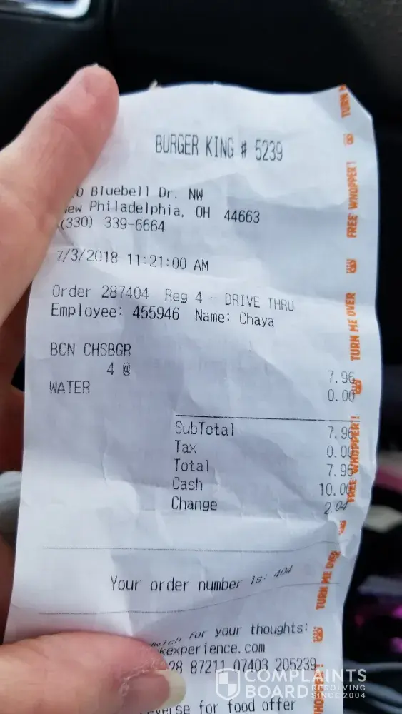 Drive thru complaint,