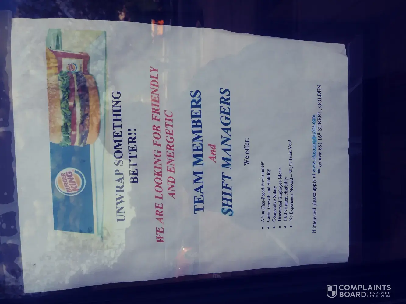 Okay I've worked in fast food be4 I understand.yes I'm homeless seeking 3 a night 5 days a week now I eat that burger king(golden)2-3 times a day 6-7 days a week