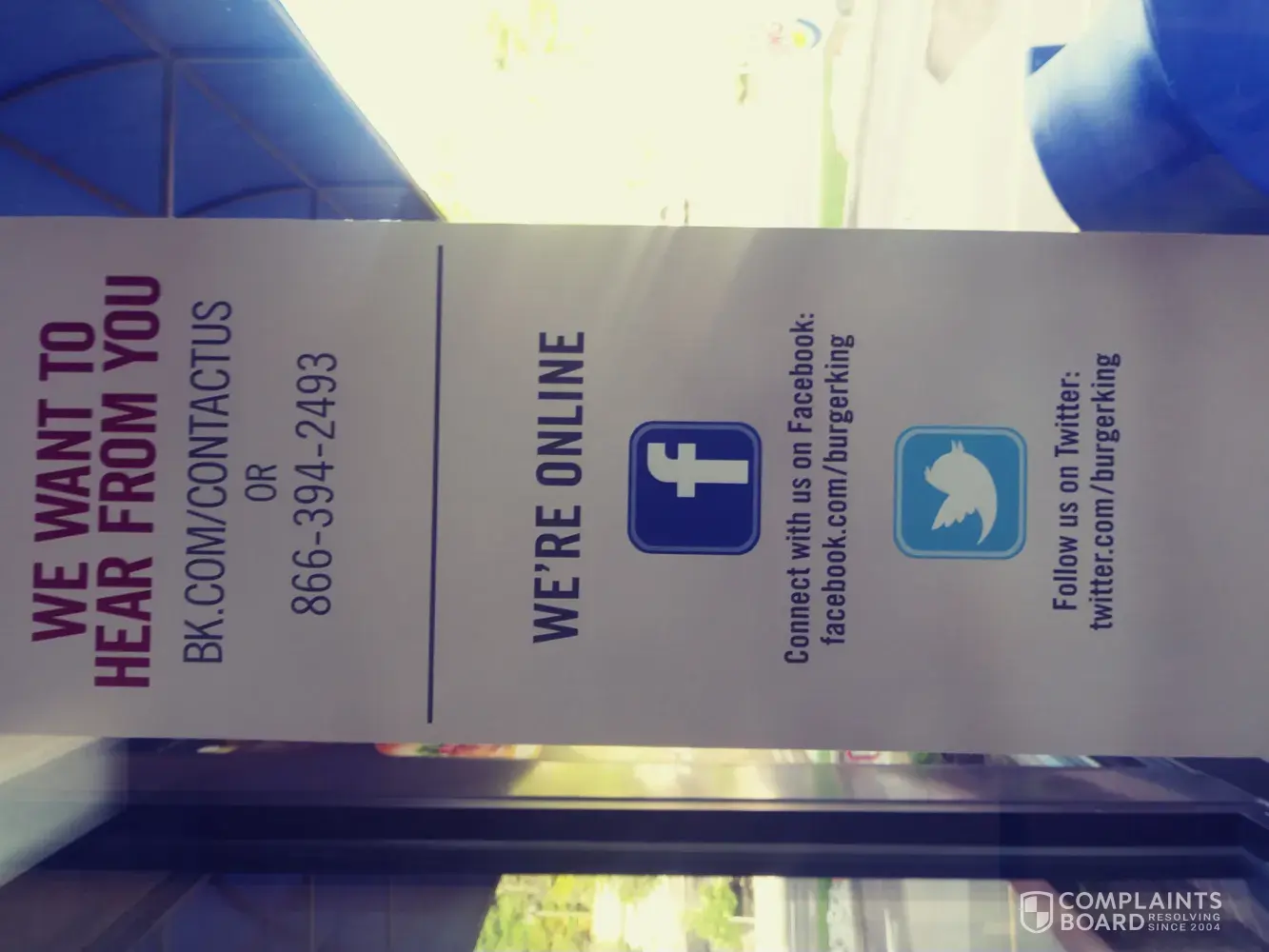 Have a bad experience in store, go onto website to contact burger king. They give you a phone # and a web form.