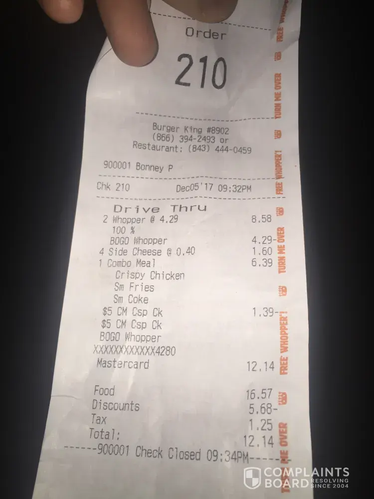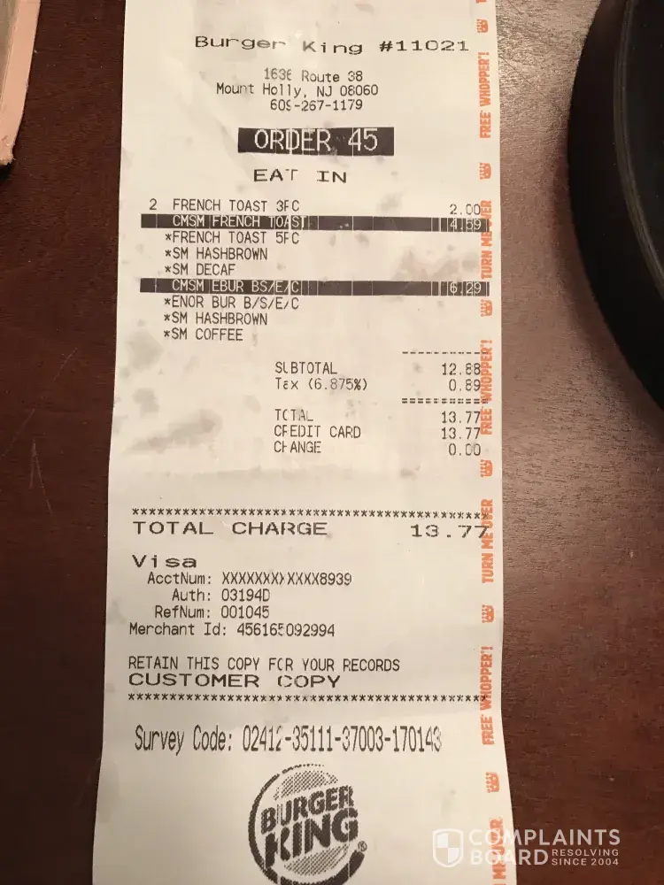 Burger King quality off care does not exist at burger king or its franchisee could care less