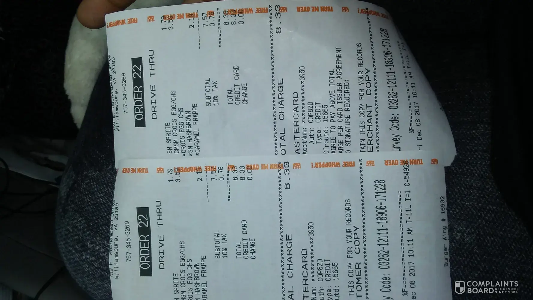 Frappe was overly sweet to much Carmel syrup. My hasbrowns were cold I requested NEW ones, waited 5mins to receive same hasbrowns luke warm. I believe they were redipped in grease. I also wanted to participate in the survey but both recipts I was given were missing the top # which is the 1st # you need to do the survey.Coincidence I don't think so.