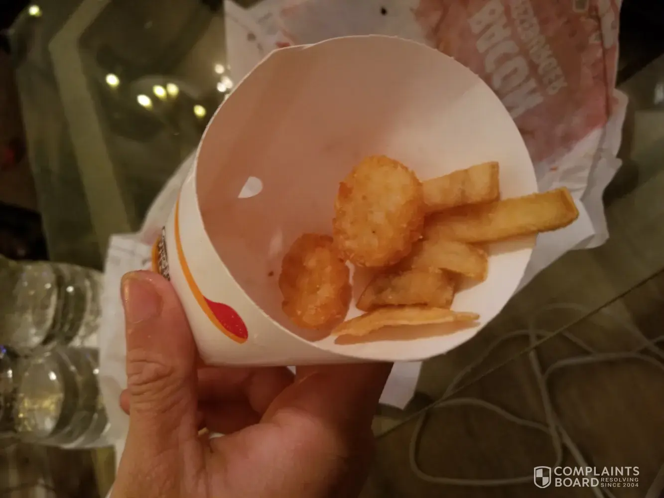 Upon visiting burger king in Girard ohio this evening I ordered two bacon cheeseburgers and French fries. The order I received was chicken nuggets. When I explained to the drive through worker the mistake she proceeded to tell her manager. He almost threw the bag with my correct food away but he did end up understanding and gave me the correct bag. I got home fifteen minute drive away from this location and sat down to enjoy my food where I opened the burgers to check because I can't eat pickles. Thankfully there were no pickles however on each burger was only about a 1/3 peice of bacon on each burger which was highly disappointing and very frustrating. I then went to eat my fries and they were really a mix of fries and hash browns. I didn't order hash browns I ordered fries. I have had many good experiences with burgerburgerking. I usually go to the niles location but this Girard location is giving the Burger King brand a bad name. I will never revisit that location. The Burger King I'm referencing in Girard is located at 322 South State St, Girard Ohio 44420. Thank you for hearing out my complaint. I would suggest making sure the store is abiding by the correct standards. I also have pictures documenting the exact products I received if you would like them Thank you, Jessica Bryant