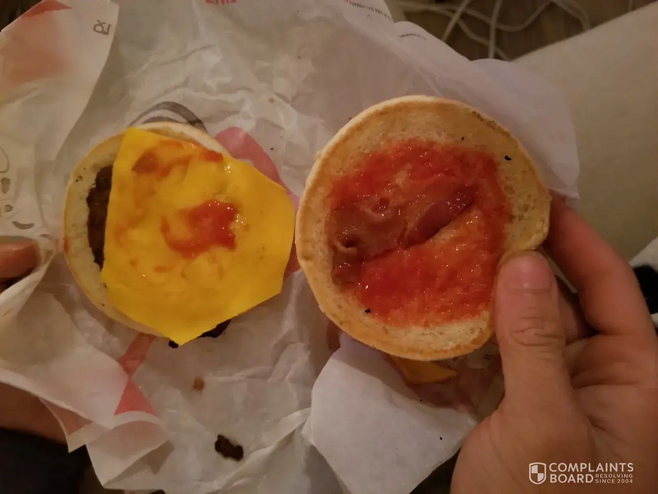 I am a regular customer for Burger King we order everyday for our office this time was very disappointed I ordered 3 cheese burgers and 2 whopper juniors to go . The whopper juniors pattie was really old and hard. I never had that experience with whoppers before was very unpleasant would definitely like my refund . When I called asked the staff they said it's not meat girl it's a hard burger . Very disappointed