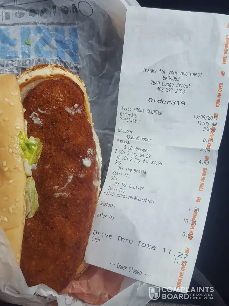 I wanted my $35 in food i spent that morning after taking a bite we all thru are food away. All i wanted was a gift card so I didnt have to go back to this crappy burger king, which me and all of my friends will review badly, and i can go to a different burger king in the next town.
