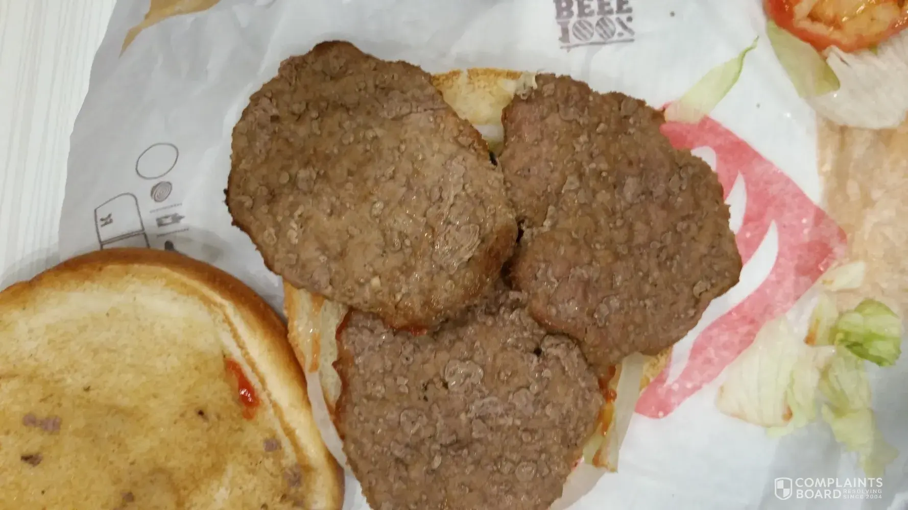Visited my local 9710 Central Ave, Montclair, CA 91763 Burger King 9/3/17 before work ordered two woppers both woppers had three small beef patties to make up one normal size wopper pattie what a terrible experience out of all my years visiting burger King never seen this kind of product from burger King was very disappointed and couldn't return it because I was on my way to work the graveyard shift. Totally unacceptable quality control. [protected]@gmail.com