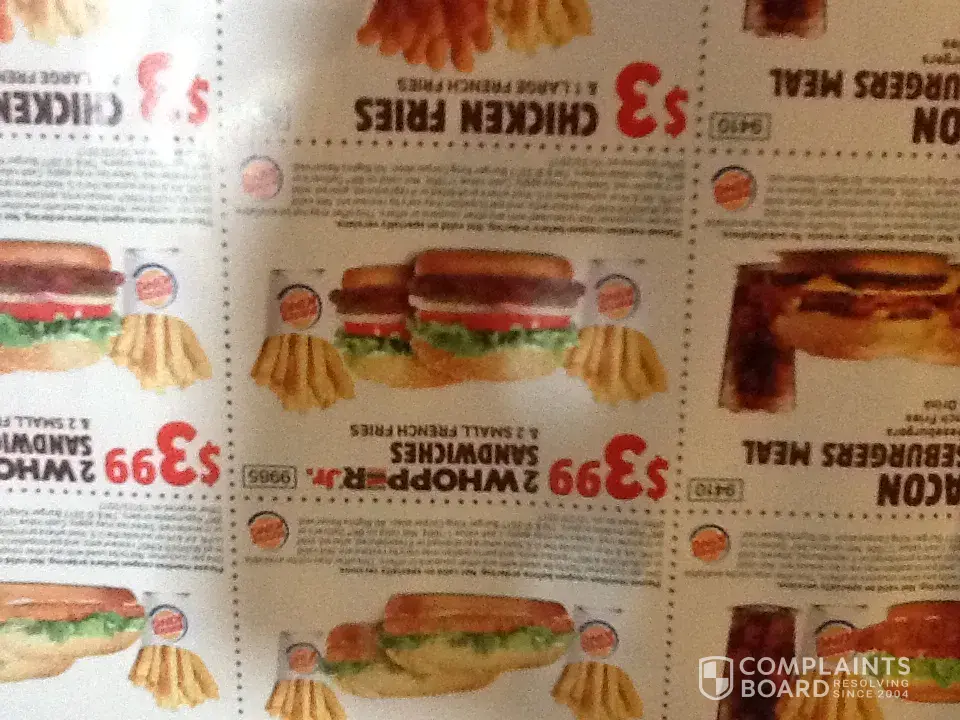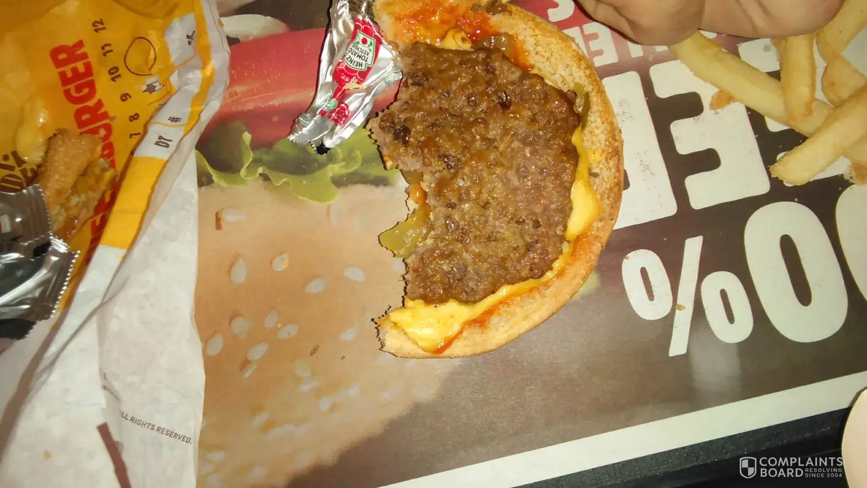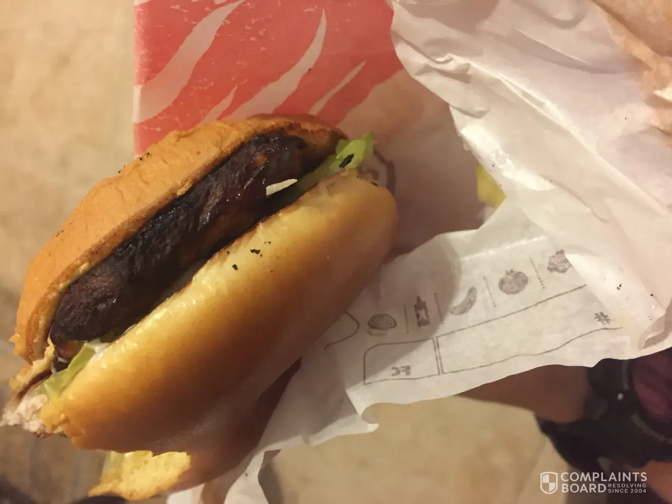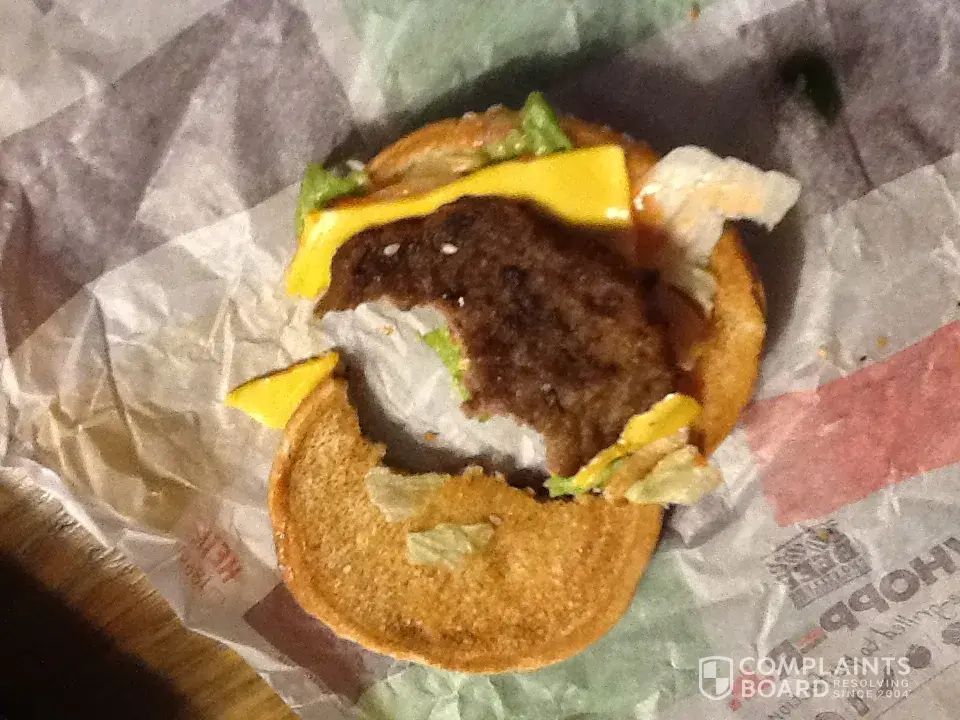 On Aug. 28, 2017 at 5:11 PM, I placed my order for (2) Whopper, Jrs. at your store #6818 (Order #229) which totaled $4.84. We were in a rush to grab something to eat because we had somewhere to be and didn't have time to prepare dinner. When we opened our burgers at home, not only were we appalled at how crappy and small they were but the patty was wafer-thin, burnt and not much bigger than a silver dollar. The bun was stale, there was no pickle or tomato, only a few pieces of lettuce that looked like they were dropped on the floor, the wafer (patty) and the slice of cheese. This certainly was NOT the Whopper, Jr. I have been getting for years. After two bites, I had to throw it away it tasted so disgusting. Just wish I had time to return it but we had only minutes to eat before we had to leave our house. I would have been much better off going an extra mile to McDonald's and getting two cheeseburgers off their dollar menu instead of spending twice that much on half the hamburger patty at BK and it also being inedible. Here is the pic I took before I threw it away and the pic I took today, ironically, of your flyer I just received. Compare the two pics and tell me if you think they resemble each other. Think you have lost a life long BK customer. Too many other burger joints nearby to waist my money here.