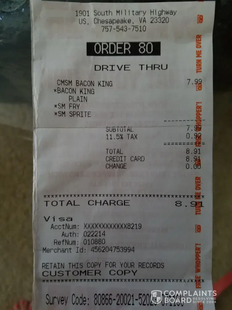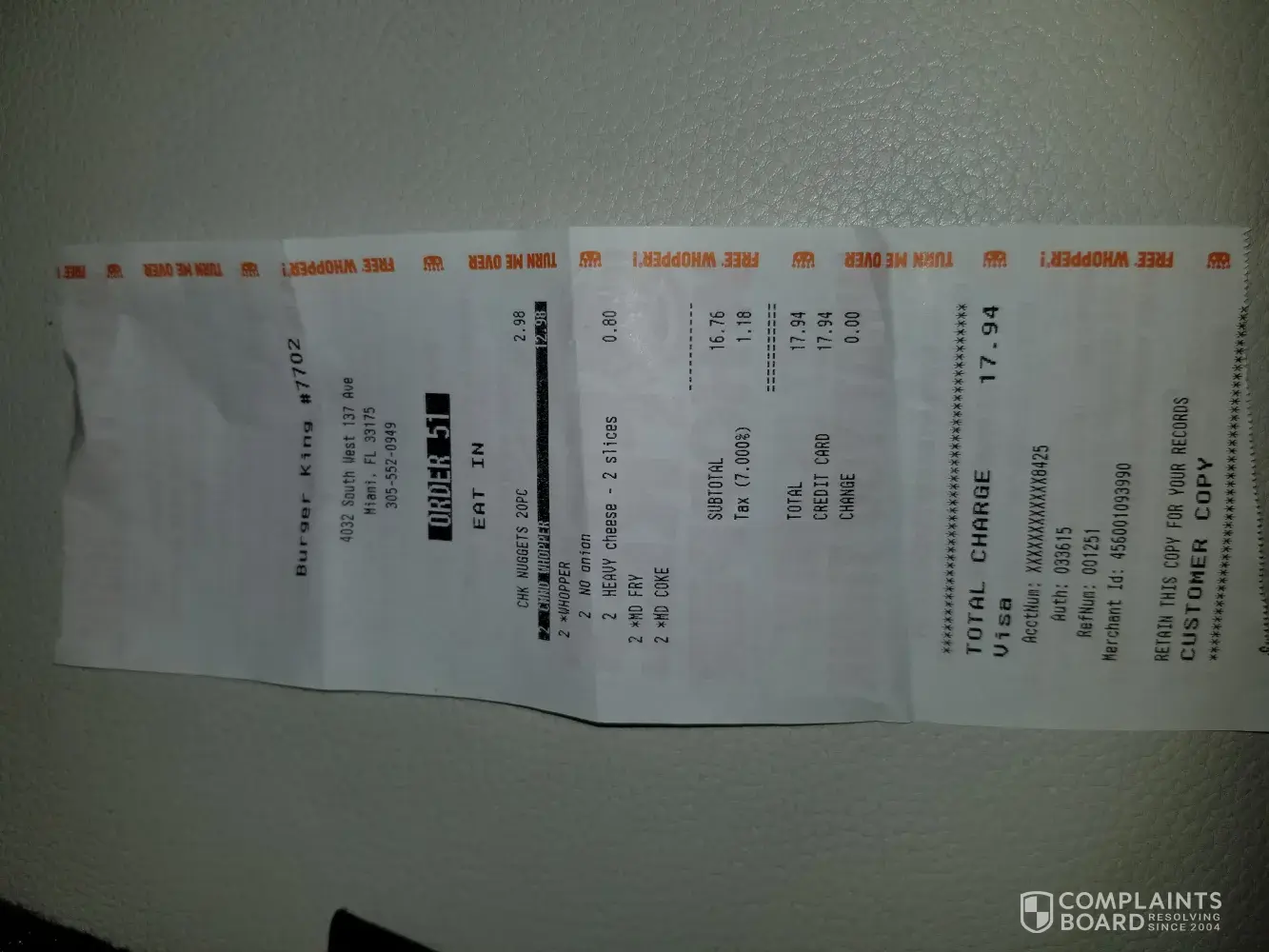 Store 7702 transaction 51, when we arrive to the store we can notice that we are like nobody, there was 4 associates talking each other and no one great us or said give me a moment we are be rigth back with you.. nothing. Them from the 2 short associates in the front one in the drive thru the other one texting in the pink phone and tall gentleman that working in the kitchen but nobody was able to identified the customer and great. Finally one of the short ladies working in the drive thru come with a very rude manners and take the Order. Ripping the recieve and don't give us the part for the survey, that's mean that they knew that they behavior was not rigth. Finally apparently when we have the food looks like a manager or supervisor make a metting in the place that all customers can see the manager or supervisor instructing the associates how important was the customer service and they are working to slow. For me this is ridiculous and extremely unprunprofessional. I expecting a call [protected] Or email [protected]@gmail.com. extremely dissatisfied customer. Looking what happen in Miami and thinking about 20 years ago how was the service and how is now. Here in the picture is how the recieve looks like . And was make on porpuse to avoid that i going and place my opinion in the survey.