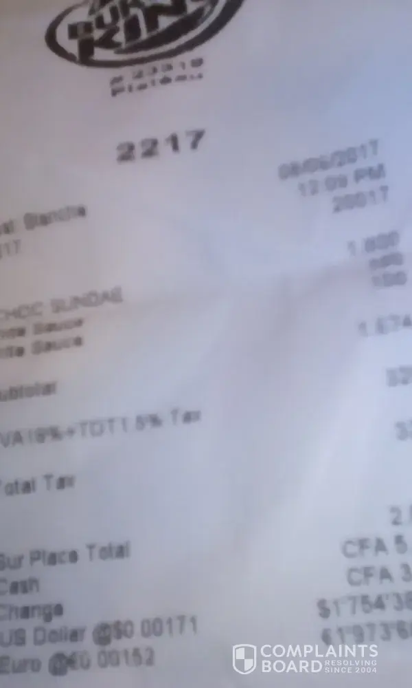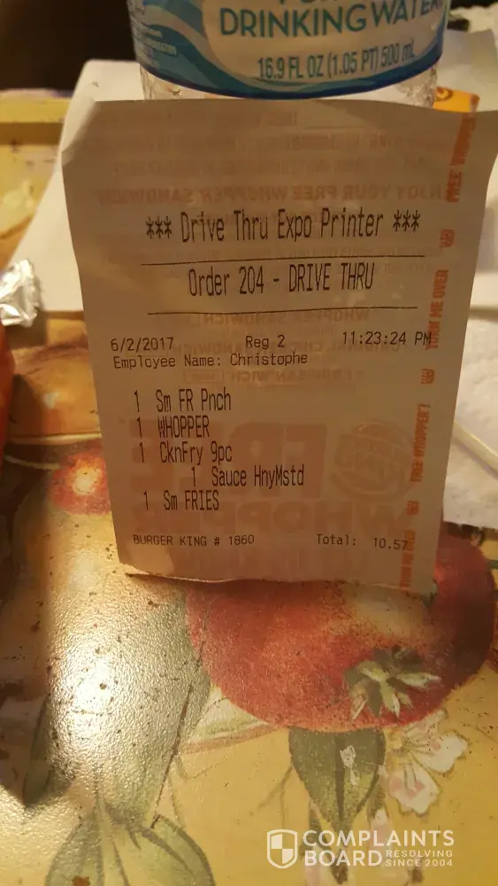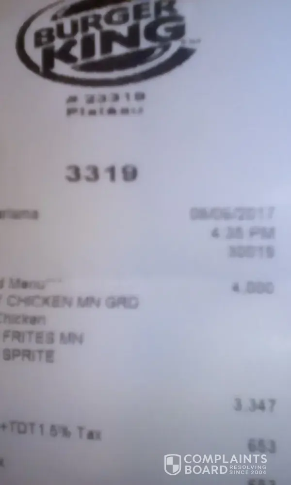 Burger King service complaint