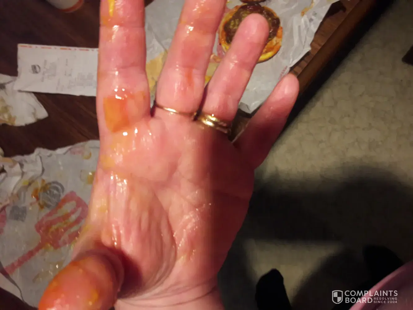 On May 2nd and May 1st I had went the Burger King they're on Stark Street 110 Stark Street store number is 1424 phone number is [protected] on the 1st and the 2nd I had bought the two cheeseburger mail for 329 and on the cheeseburgers it was supposed to be no cheese extra ketchup or mustard on the first day May 1st it was 4:30 in the afternoon when I got my order the fries were cold or lukewarm and the cheeseburgers with her supposed to be hamburgers had ketchup or mustard on them but ketchup mustard on the hamburger it was on the wrapper and when I opened it up and got all of my hands my clothes the whole nine yards took pictures and on May 2nd I went in at 12:30 order the same thing this time I got two cheeseburgers and the ketchup and mustard was all over there I'm at the hospital I have family having surgery and everything I don't like ketchup and mustard all over my clothes and I showed these pictures to the manager David and he says to me that won't happen these won't look like that hand in my bag and while i was driving down the road to stick my hand in the bag the fries hot that was good I get to pull my hamburger out it's a cheeseburger and it's got ketchup and mustard worse then the day before now I don't know if there's a problem with the ketchup and mustard dispensers but and it seems did not have any time help or sympathy it was just to get me out of the drive-thru and that's what I thought very very very bad customer service rudeness me and my family eat at Burger King LOL but to get that kind of service and that kind of food was uncalled for disrespect I would like some results out of this my number is [protected] and yeah I'm going to post it on Facebook about how not to go to that Burger King Hydra still I'm not getting no results and you leave me know reason not to say anything to the public about how you want to eat ketchup and mustard on everything and disrespect of the management